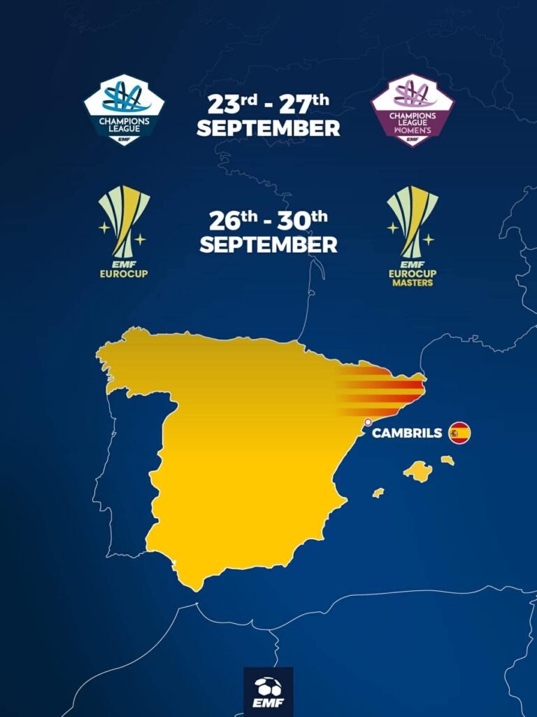 Η “καρδιά” του Ευρωπαϊκού Mini-Football φέτος θα χτυπήσει στην Ισπανία, και πιο συγκεκριμένα στην Κάμπριλς της Καταλονίας, εκεί όπου από τις 23 έως και τις 30 Σεπτεμβρίου θα διεξαχθούν οι δύο κορυφαίες διασυλλογικές διοργανώσεις της European Mini-Football Federation (E.M.F.), Champions League και EURO-CUP.